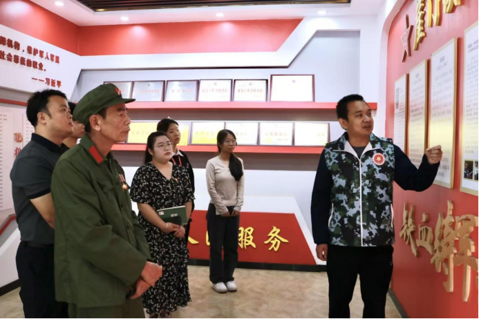 活动第二站来到服务站“崖门镇革命史展室”“荣誉室”,服务站工作人员结合红色历史与革命先烈展开沉浸式讲解。杨华钦与学生交流,描述了他难忘的一件事。陈华醒则表示,生活来之不易,寄语青年“科技报国正当时”。武装部专职副部长韩世杰表示:“老兵是行走的教科书,我们将建立常态化联络机制,让红色资源活起来、传下去。”