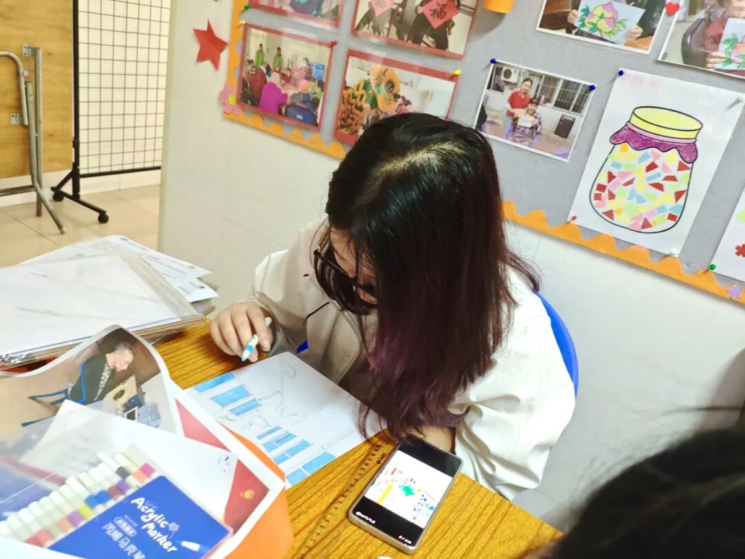 活动现场,社工姐姐为志愿者们送上提前精心整理的“温情档案”,为精准服务筑牢基础。入党积极分子志愿者们以档案为依托,或挥笔勾勒线条、调配色彩,将长者的青春风采与岁月温润跃然纸上,或梳理经历素材、撰写温情文字,凝练出鲜活的“人生回忆录”片段,互动间的细节核对与故事倾听,让现场满溢党群同心的暖意。入党积极分子们以专业技能为工具,以党建引领为方向,让每一幅画作、每一段文字都成为承载长者记忆与党员关怀的珍贵载体,这既是对传统美德的传承,也是党员服务群众、践行初心使命的具体体现。