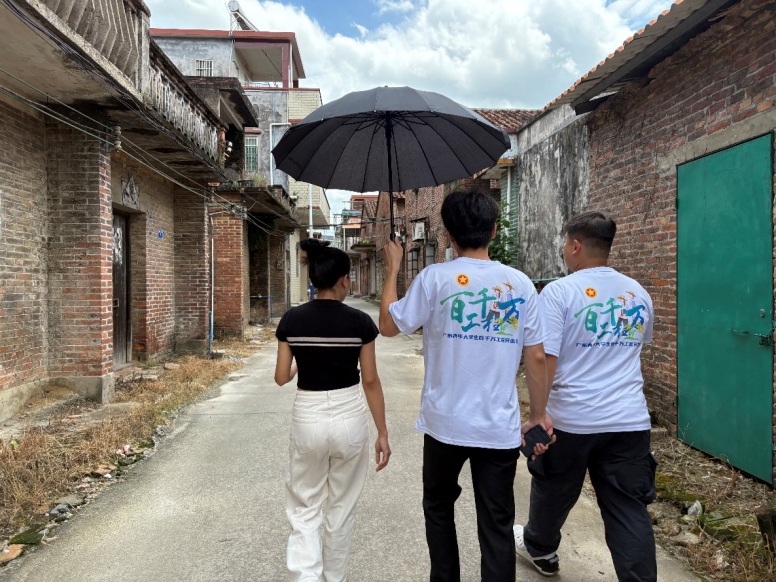 为贯彻落实广东青年大学生“百千万工程”突击队行动,进一步明确服务目标和工作重点,推动“百千万工程”工作走深走实。2025年7月10日,广州华商职业学院“新山筑梦”突击队前往增城区石滩镇新山吓村开展实地调研工作,确保此次工程顺利开展。以墙体绘画为切入点,挖掘乡村特色资源,同步探索龟苓膏、韭菜等农产品直播推广路径,为乡村发展注入青春动能。