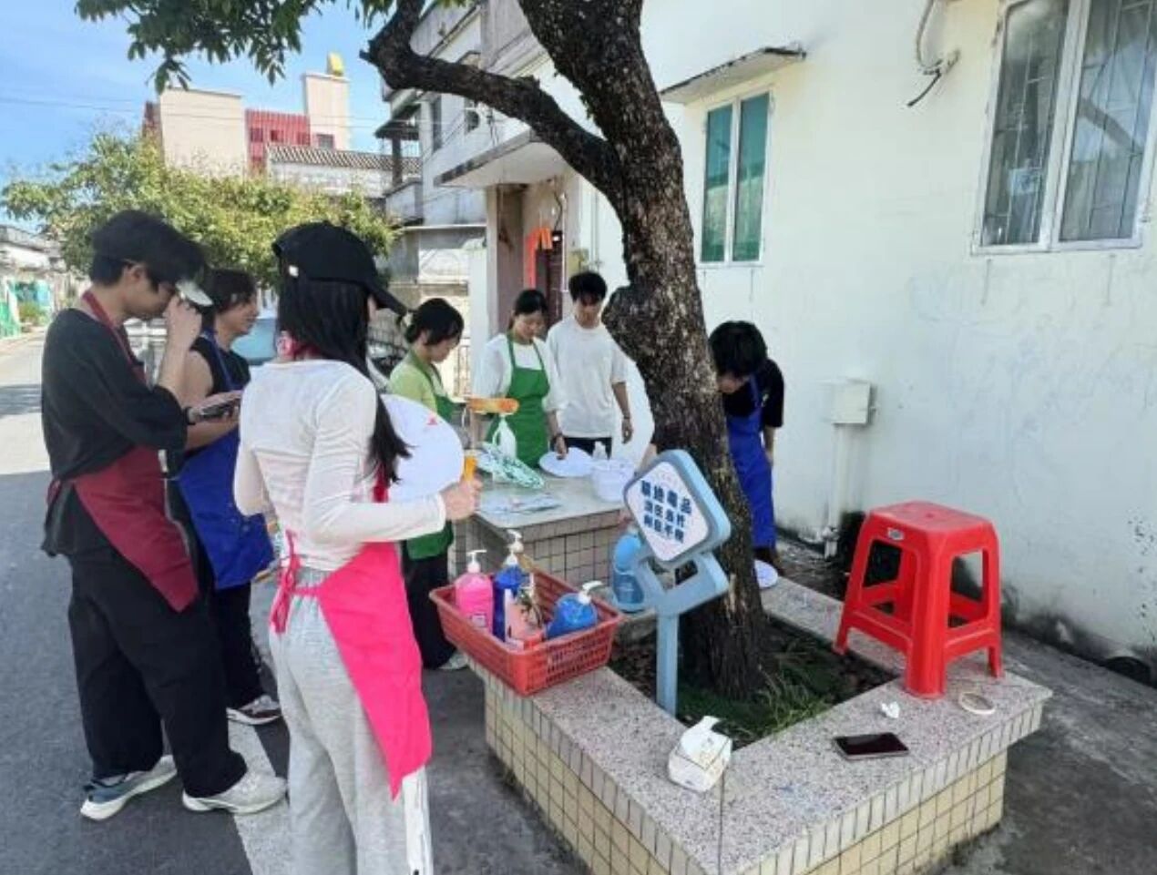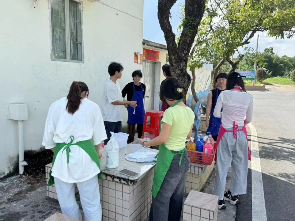 6月11日下午,广州华商职业学院青格筑基千村队第一对带着对乡村振兴的热情,踏上了这片充满希望的土地,以墙为纸、以笔为墨,用基础铺色为坑口村勾勒出崭新的画卷。