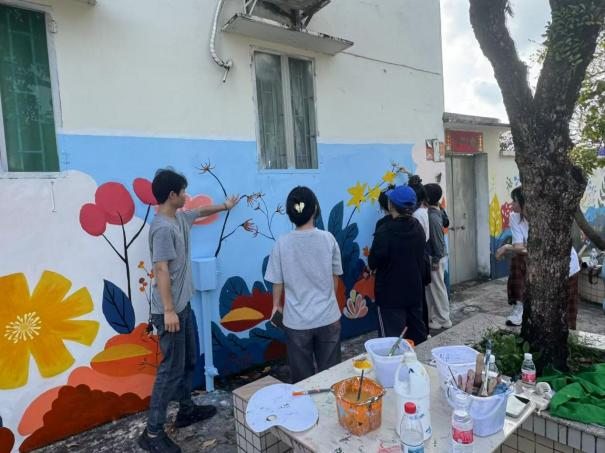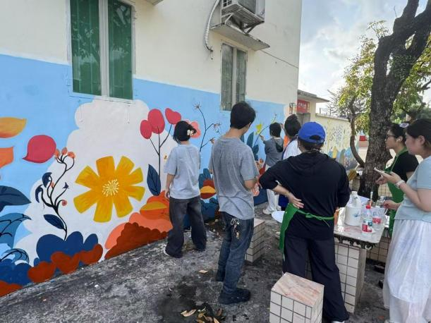 7月中旬,阳光暖暖地洒在广东省江门市坑口村的墙壁上,百千万工程的大学生们正拿着画笔,小心翼翼地做着墙绘的最后修饰。经过数日的辛勤付出,广州华商职业学院青格筑基干村的队员们在坑口村完成了最后的墙绘工作。这些墙绘内容丰富多样,宛如一幅幅生动的乡村画卷。