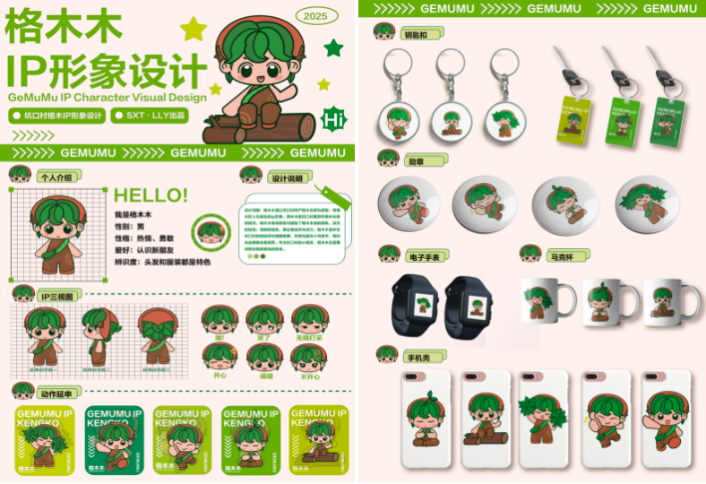 本次百千万工程坑口村实践中,我们交出赋能乡村振兴的系列成果:结合村庄农耕文化、民俗与自然风貌,设计出格木木乡村IP人物,成为承载村庄记忆的文化符号;立足实地调研,绘制涵盖“三生融合”与“农旅+文创”路径的乡村规划计划图,为村庄长远发展提供科学路线图,既美化村容,更成为展示村庄文化与发展愿景的立体宣传栏,三项成果环环相扣,为坑口村留下可延续的文化资产与实践支撑。