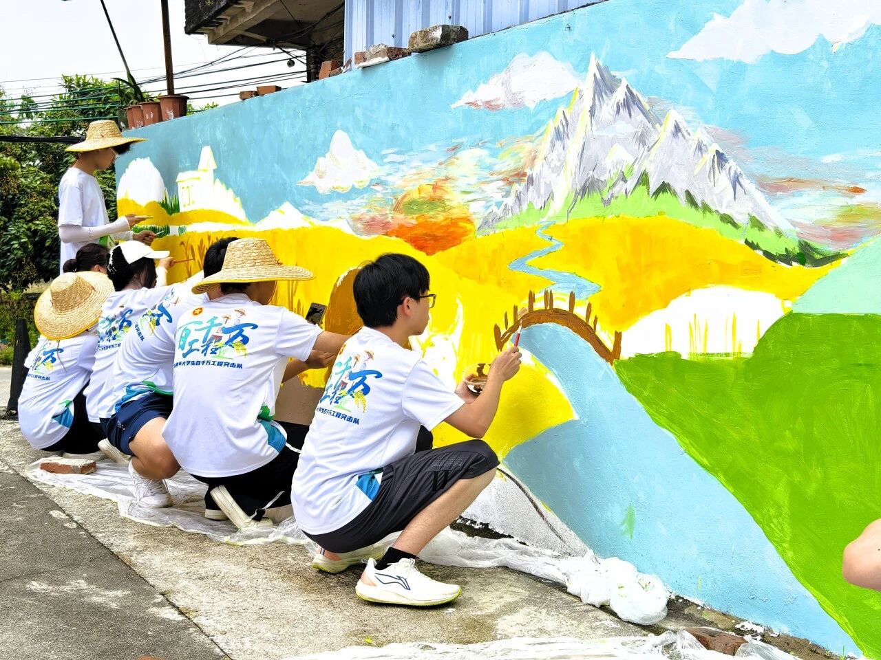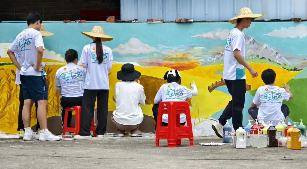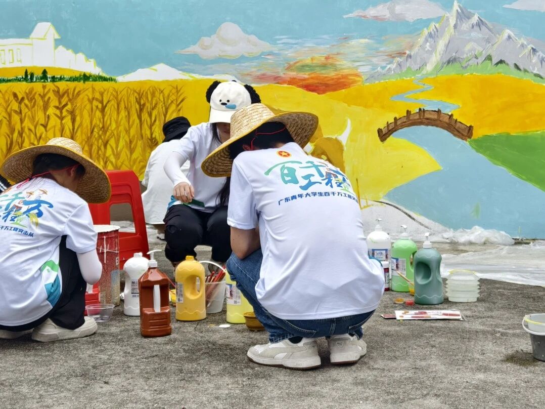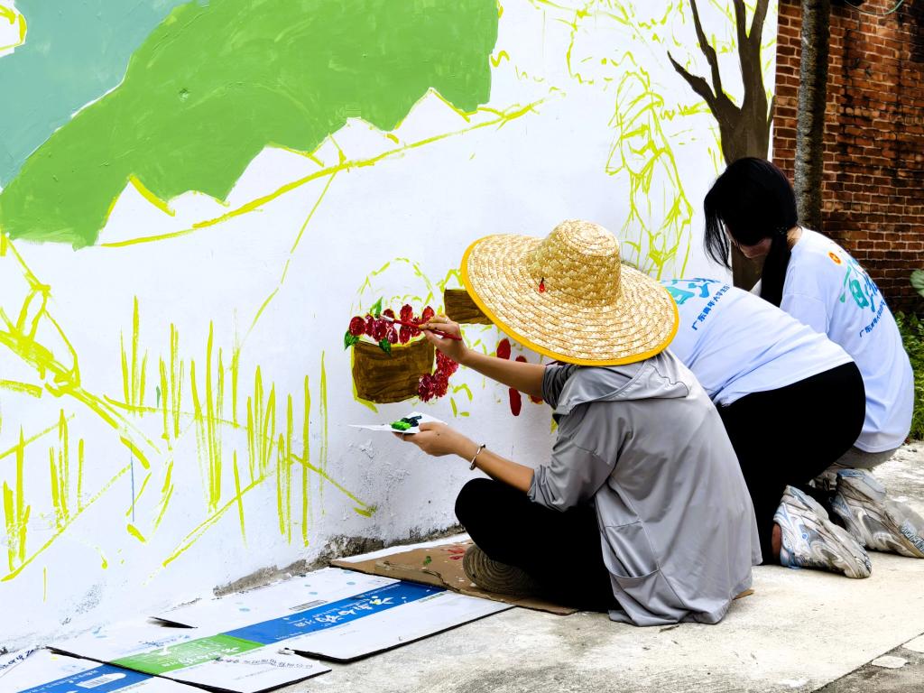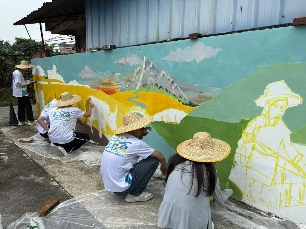 为积极响应绿美乡村建设号召,2025年7月12日,广州华商职业学院“新山筑梦”突击队,启程奔赴增城区石滩镇新山吓村。以墙体为画布,为村庄勾勒、晕染出一幅幅饱含农耕记忆的画卷,让沉寂的墙面再次焕发生机。